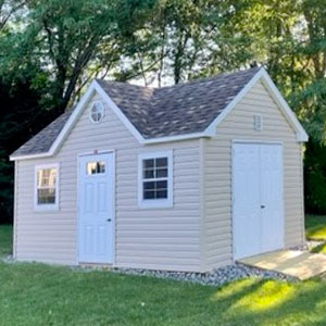 We create a level stone pad for your new shed to sit on by excavating the area, bringing in the stone, making it level and compacting it down.